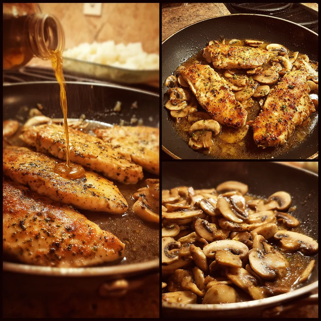 - Pour in Marsala wine, scraping up browned bits from the pan. Simmer for 2–3 minutes.