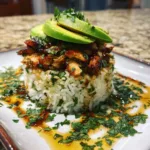 Cilantro-Lime Rice Stack with Avocado & Glazed Chicken: A Fresh, Layered Meal with Bold Flavor
