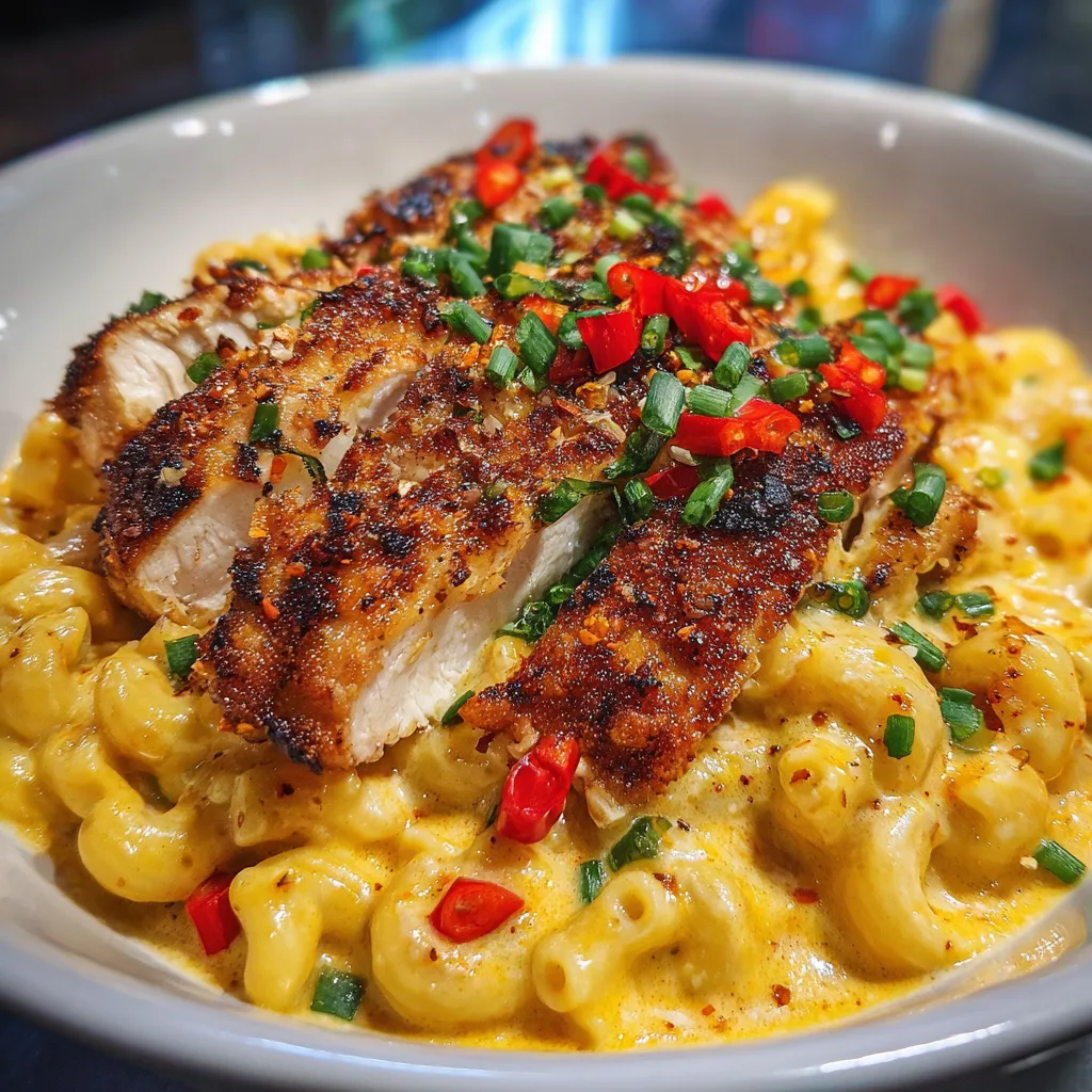 Creamy honey pepper chicken mac and cheese featuring tender seasoned chicken tossed in a sweet and peppery glaze, combined with rich, cheesy pasta for a comforting and flavorful meal.