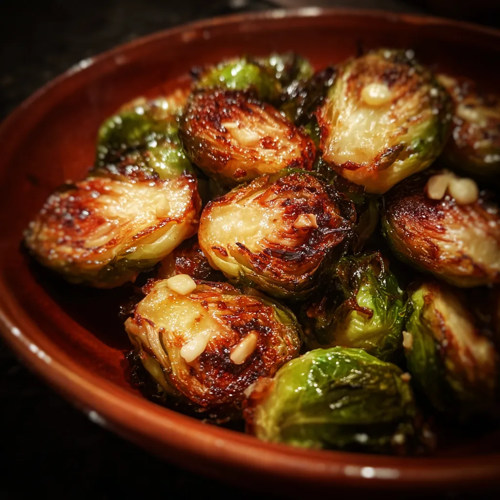 Crispy roasted Brussels sprouts tossed with garlic and olive oil, delivering a flavorful, golden-brown side dish that’s both healthy and delicious.