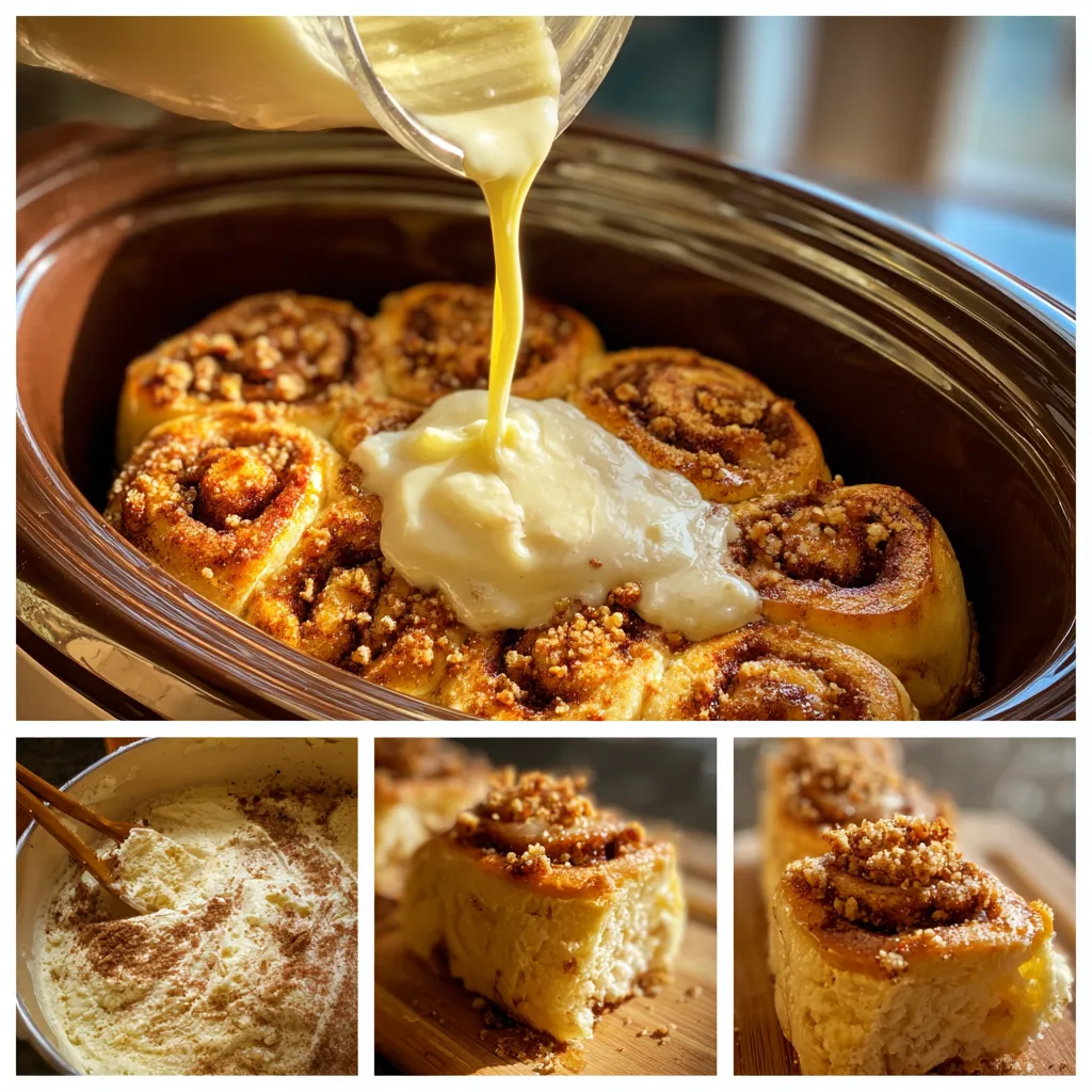 A warm and comforting slow-cooker breakfast casserole made with soft cinnamon rolls baked in a rich vanilla-cinnamon custard, perfect for holidays and brunch.