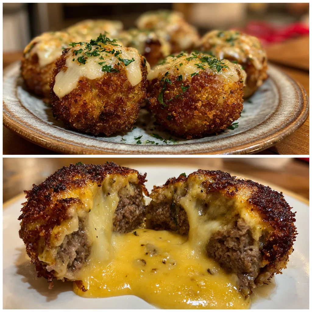 Savory bite-sized cheeseburger bombs filled with seasoned beef and gooey cheese, wrapped in soft dough and brushed with garlic-parmesan butter for an irresistible appetizer or snack.