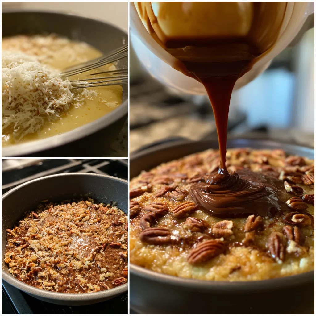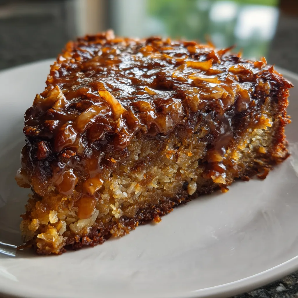 You can adapt this cake easily to suit different preferences. For a deeper chocolate flavor, replace part of the milk with brewed coffee. If you prefer a less sweet topping, reduce the brown sugar slightly and use unsweetened coconut. Chopped walnuts can replace pecans for a different nut profile. For added richness, a small amount of dark chocolate chips can be folded into the batter. I have also tested this recipe with almond milk, and it performed surprisingly well, producing a slightly lighter crumb.