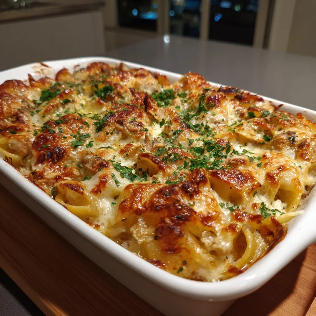 This dish is creamy, comforting, and packed with flavor. It can be made ahead of time, feeds a crowd easily, and combines simple ingredients into a restaurant-quality meal. The balance of tender chicken, savory sauce, and melted cheese makes it universally appealing.