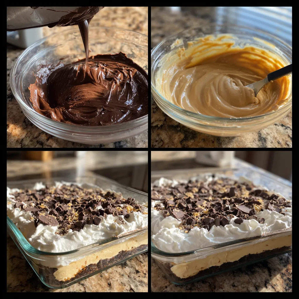 Another fun variation is adding crushed pretzels between the layers. The salty crunch pairs beautifully with the sweet chocolate and peanut butter flavors.