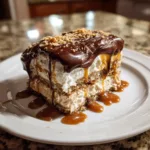 No-Bake Chocolate Peanut Butter Lasagna is a rich, indulgent dessert that combines the classic flavors of chocolate and peanut butter in a beautifully layered treat. With its crunchy cookie crust, creamy peanut butter filling, and smooth chocolate pudding layer, every bite offers a perfect balance of textures and flavors.