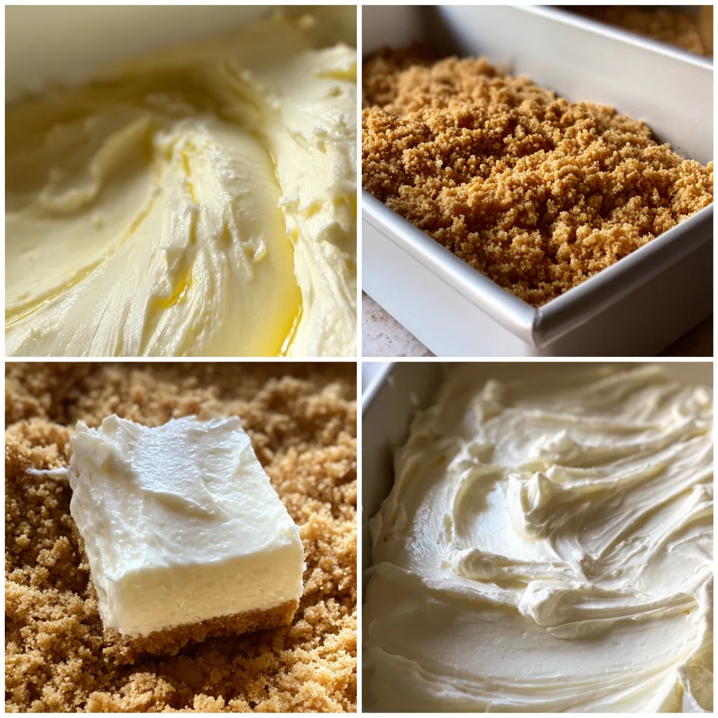 Begin by preheating the oven to 170°C and lining a baking pan with parchment paper. In a bowl, combine graham cracker crumbs, melted butter, and a portion of the sugar. Mix until evenly moistened, then press firmly into the bottom of the prepared pan. Bake for 10 minutes and allow to cool slightly.