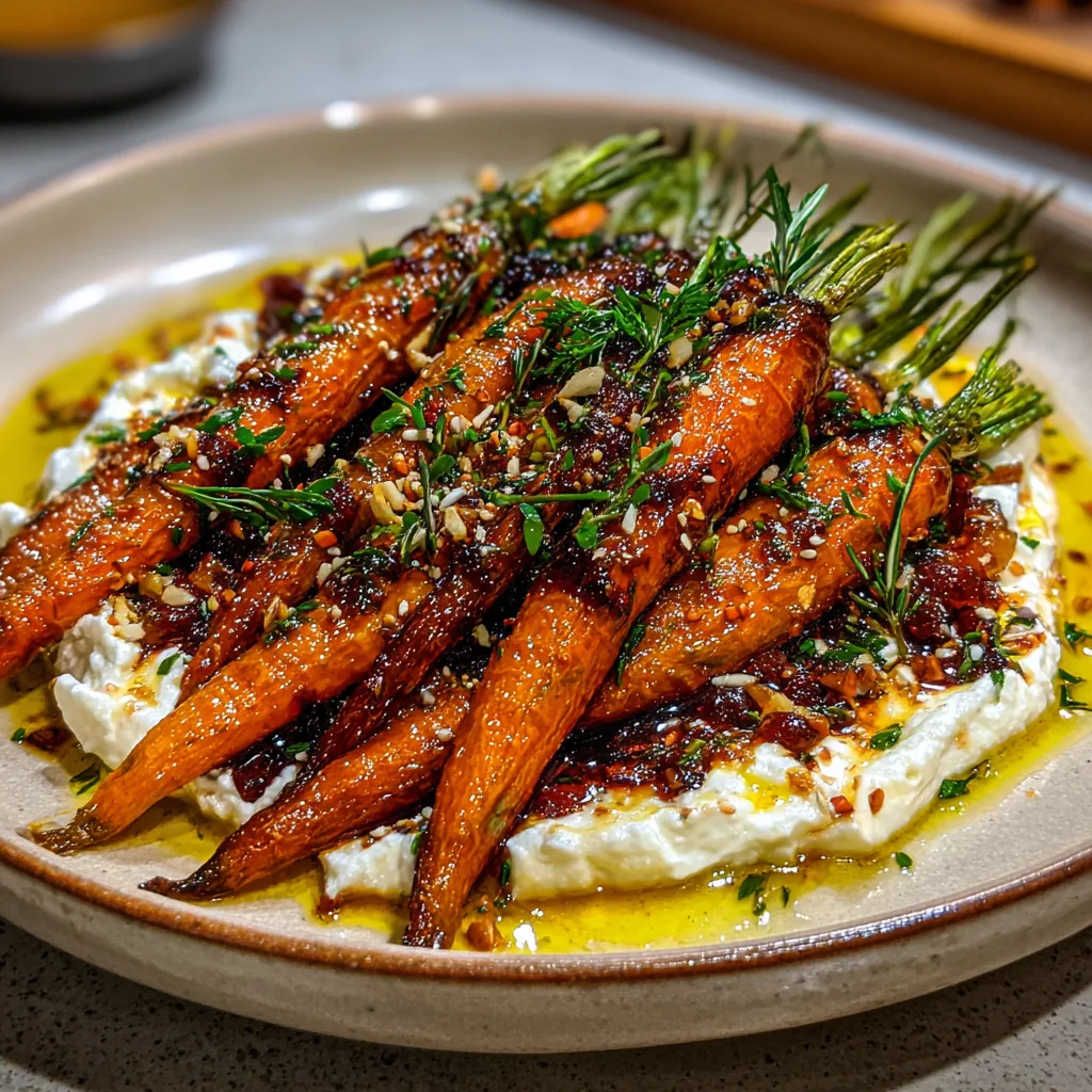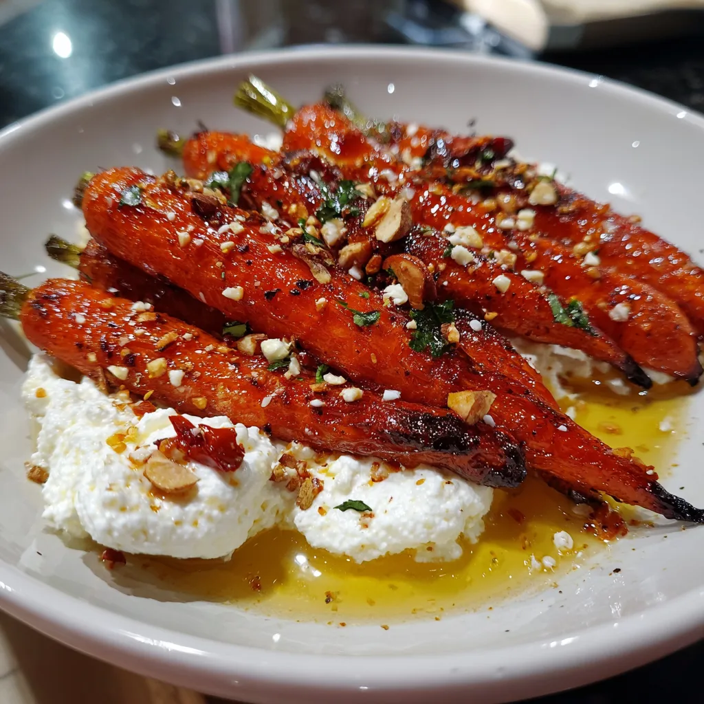 Roasted Carrots with Whipped Ricotta and Hot Honey is a dish that transforms simple ingredients into something unexpectedly elegant. This recipe highlights the natural sweetness of carrots, enhanced through roasting until tender and lightly caramelized, then paired with creamy whipped ricotta and finished with a drizzle of spicy-sweet hot honey. I first prepared this dish as a side for a dinner party, and it quickly became the most talked-about element on the table. The contrast of textures and flavors is what makes it special: warm, earthy carrots against cool, airy ricotta, balanced by a gentle heat that lingers pleasantly. It works beautifully as a side dish, a light appetizer, or even a vegetarian main when paired with crusty bread. Simple, sophisticated, and deeply satisfying, this recipe proves that vegetables can be just as exciting as any centerpiece.