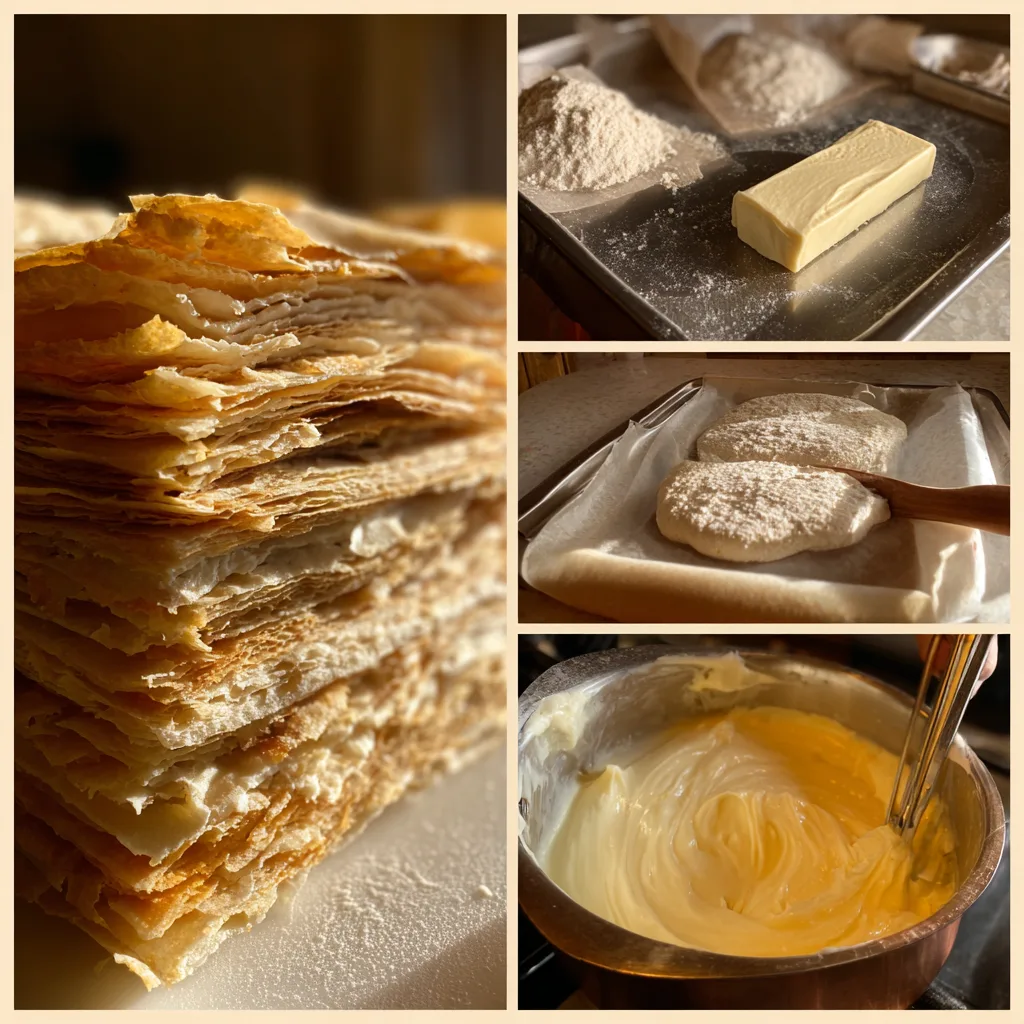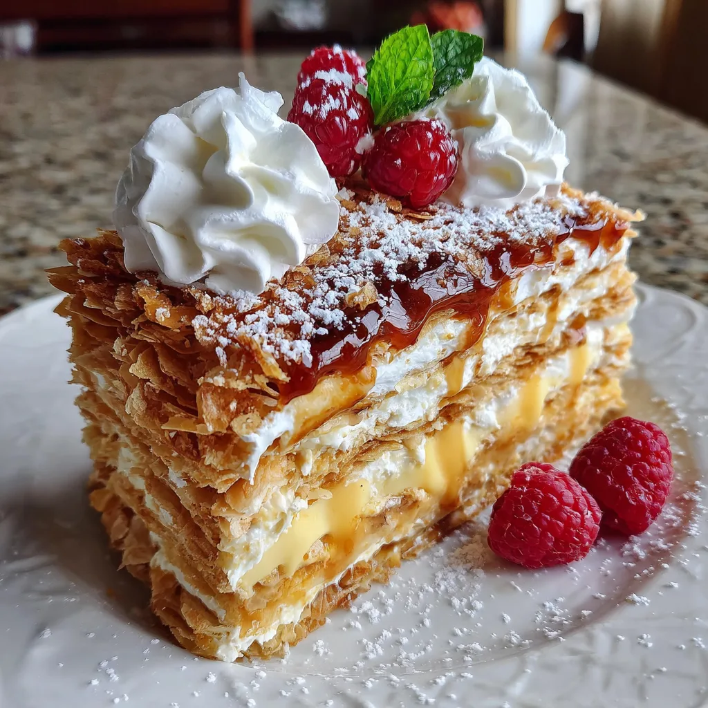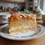 A classic Russian Napoleon cake made with multiple layers of crisp, flaky pastry and rich vanilla custard cream, assembled and chilled until soft and cake-like. This elegant dessert is creamy, delicate, and perfect for special occasions.