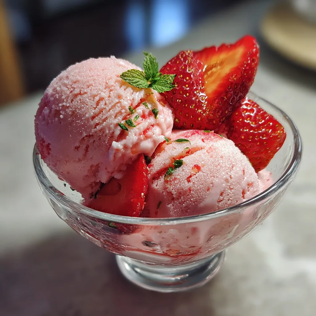 Strawberries are the heart of this ice cream. Fresh, ripe strawberries provide natural sweetness, vibrant color, and authentic flavor. The riper they are, the better the final result.