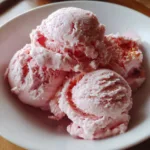 A creamy and refreshing homemade strawberry ice cream made with real strawberries and rich cream, delivering a naturally sweet and fruity frozen dessert.