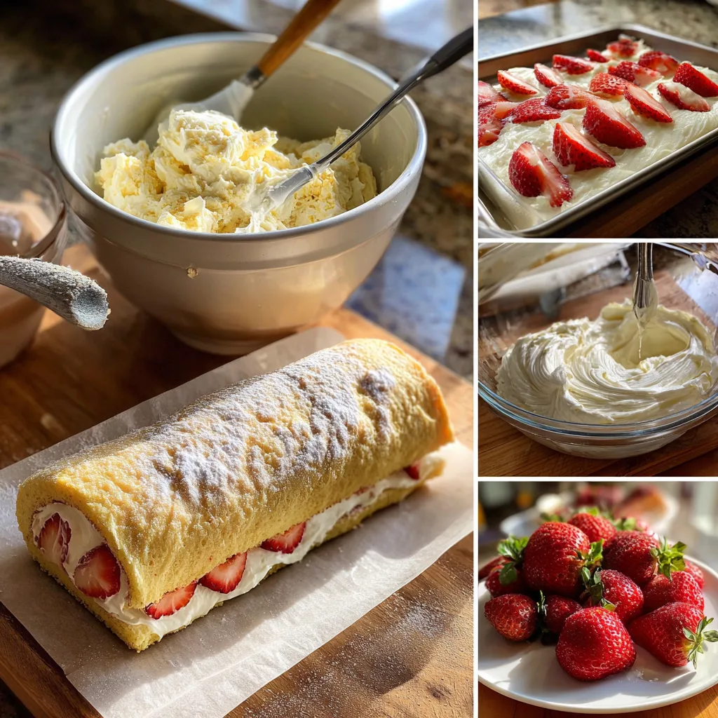 Strawberry Shortcake Cheesecake Roll is an elegant dessert that combines the creamy richness of cheesecake with the light texture of sponge cake and the sweet freshness of strawberries. Rolled cakes always create an impressive presentation, and this version adds a luscious cheesecake filling and strawberry shortcake flavors for a dessert that looks as good as it tastes.