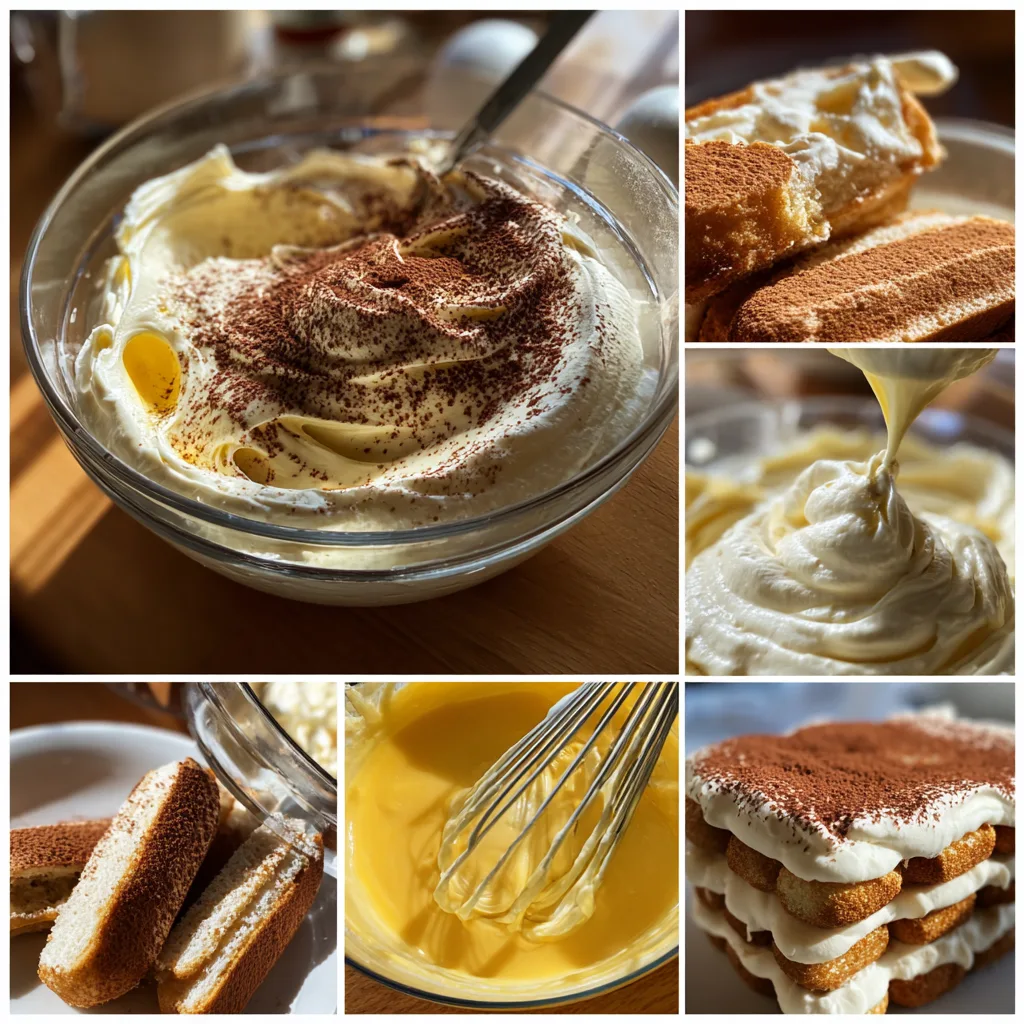 Separate the egg yolks from the whites. Whisk the yolks with sugar until pale and creamy, then gently fold in the mascarpone until smooth. In a separate bowl, whip the egg whites until stiff peaks form, then carefully fold them into the mascarpone mixture to keep the cream light.