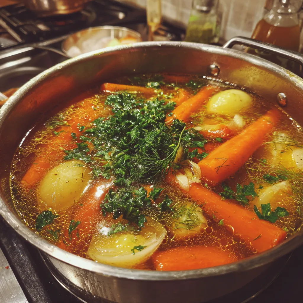 Veggies Stone Soup is a hearty, rustic vegetable soup inspired by the classic folk tale, made with a medley of fresh vegetables simmered in a savory herb-infused broth.