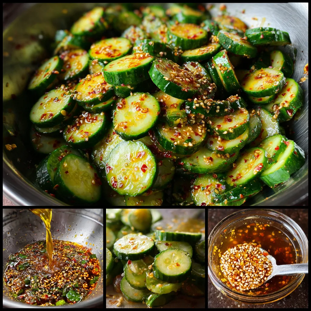 A refreshing and bold viral spicy cucumber salad featuring crisp cucumbers tossed in a tangy, garlicky, and chili-infused dressing.